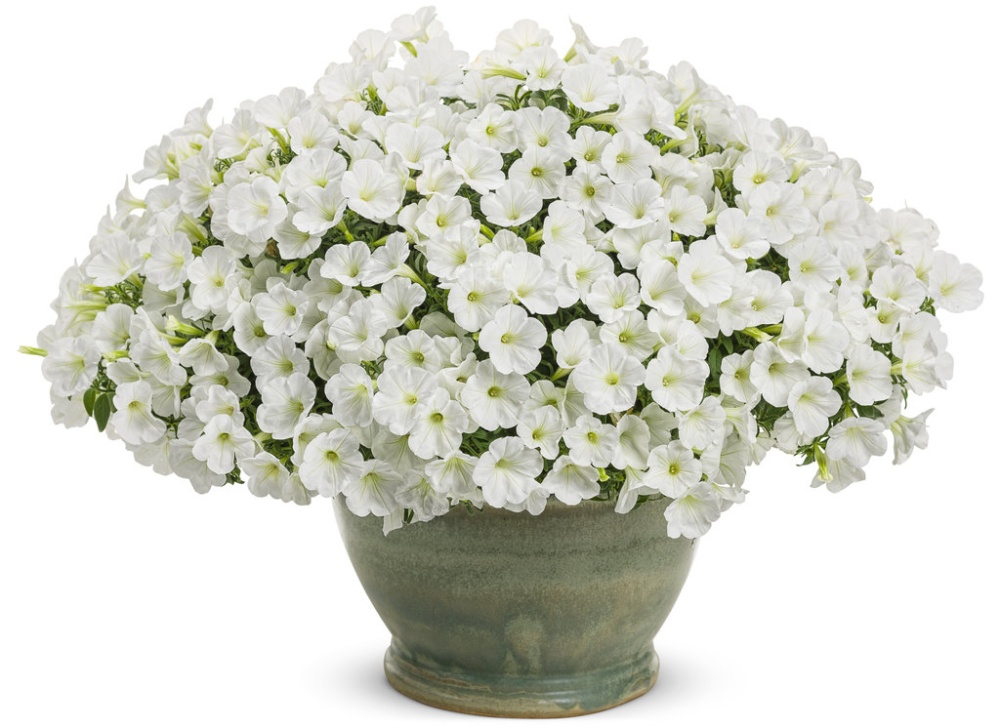 Supertunia Mini Vista® White to roślina zwisająca z rodziny petunii. Jej obfite kwitnienie przyciągnie nie jednego! Piękne kwiaty w kształcie dzwonka o śnieżno białym kolorze, będą cieszyć oko aż do późnej jesieni.